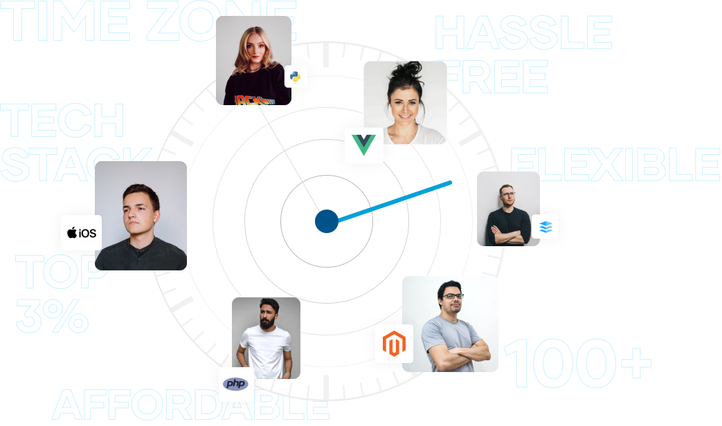 Our deep-vetted developers match your time zone and strive to work within your working hours. We make sure our software developers meet all your skillset requirements and integrate in your teams seamlessly, so it feels like they are sitting in the same room.
